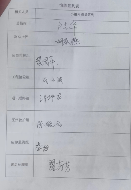 四、演練人員:應(yīng)急小組成員,詳見(jiàn)簽到表。