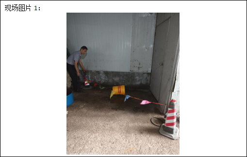 (現(xiàn)場(chǎng)工作人員:目前油桶口處仍有少量油呈滴狀往外泄漏,桶內(nèi)大約還剩1/3,地面已堆積大量廢油,暫未流到雨水管網(wǎng)及外環(huán)境。)